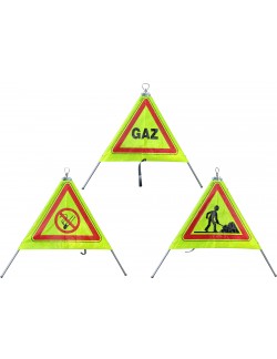 Le tripode de signalisation, ou triopan, est un triangle de signalisation mobile à trois faces permettant de signaler la présence de professionnels aux alentours ou d’un danger sur la route ou les voies publiques. Pliable et peu encombrant, ce dispositif de signalisation retro-réfléchissant permet une visibilité longues distances, de jour comme de nuit.